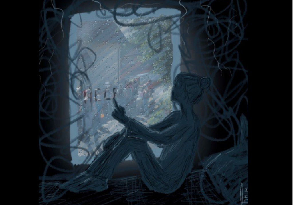 Ein Fenster zum Rest der Welt… Für mich ist dieses Fenster mein Handy, da ich nicht aus dem Fenster sehen kann. Meine Vorhänge sind immer zu, weil das Licht mir Kopfschmerzen macht, aber durch mein Handy kann ich dem Leben ein wenig zusehen. Freunde erzählen mir, was sie am Tag gemacht haben, ich sehe Videos und Fotos, aber selber habe ich nichts zu erzählen. Ich sitze nur hinter dem Fenster und warte…